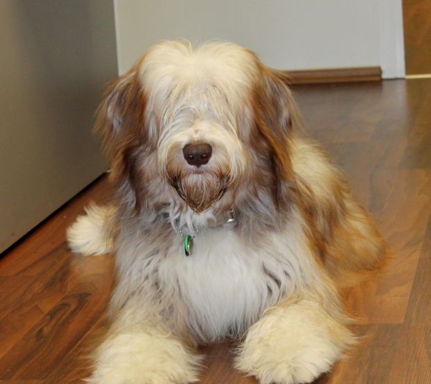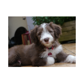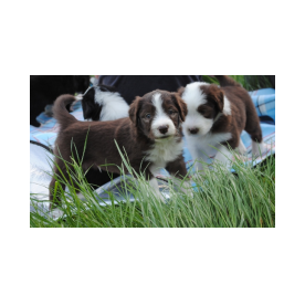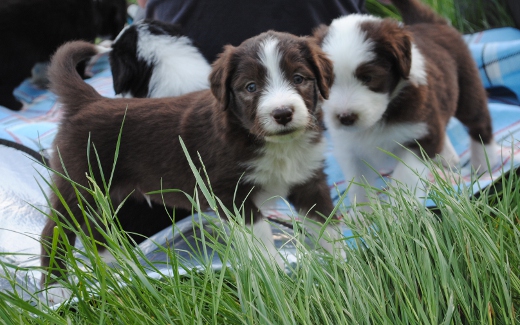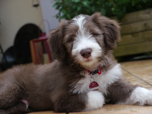 Louis ist der einzige braune Rüde im Wurf. Seine Familie hat sich sofort in ihn verliebt. Er sah immer ein bißchen lustig aus, als hätte er eine Brille an und irgendwie grimmig. Dabei war er das gar nicht. Er kam mit vollständig pigmentiertem Näschen zur Welt, war immer sehr agil und mutig.