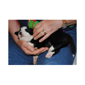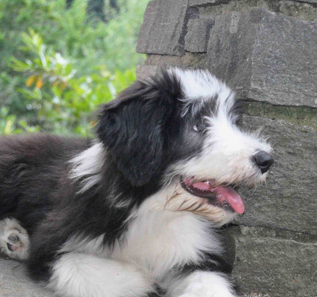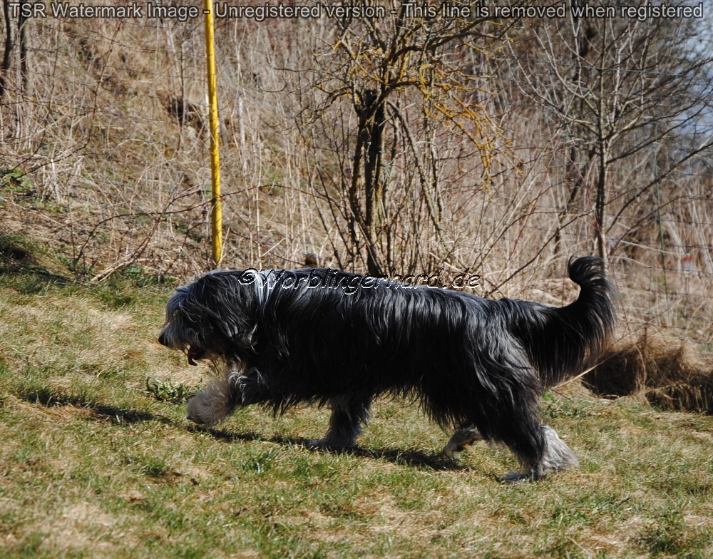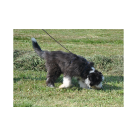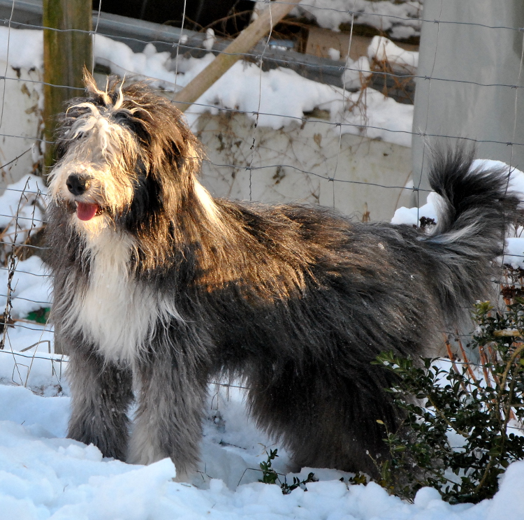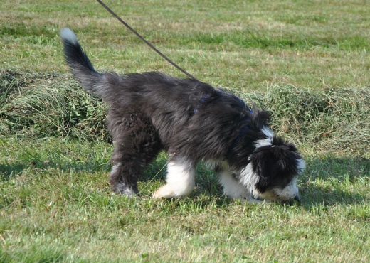Sie hat traumhaftes Pigment, ganz dunkle Augen und einen schönen breiten Unterkiefer mit korrektem Scherengebiß, eine gute Knochenstärke, und nicht zu langes harsches, pflegeleichtes Fell.