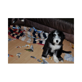 Molly ist eine große kräftoge Hündin, die ihrem Papa "wie aus dem Gesicht geschnitten" ähnelt. Sie ist weder geräuschempfindlich noch ängstlich, allerdings hat sie einen sehr eigenen Kopf.