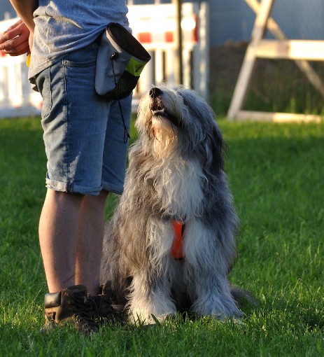 Er ist allzeit zu allen Schandtaten bereit, und er hat sehr viel Spaß am Clickern und wir mit ihm. Er zeigt sich sehr intelligent, und so manches Mal muss ich feststellen, dass eine Übung schon viel schneller sitzt als ich es mir gedacht habe.
