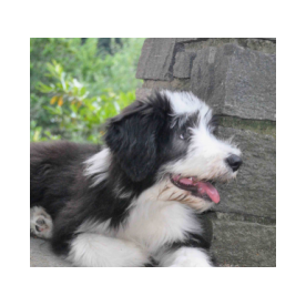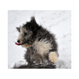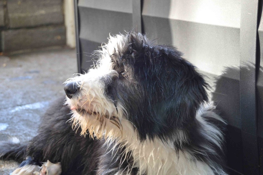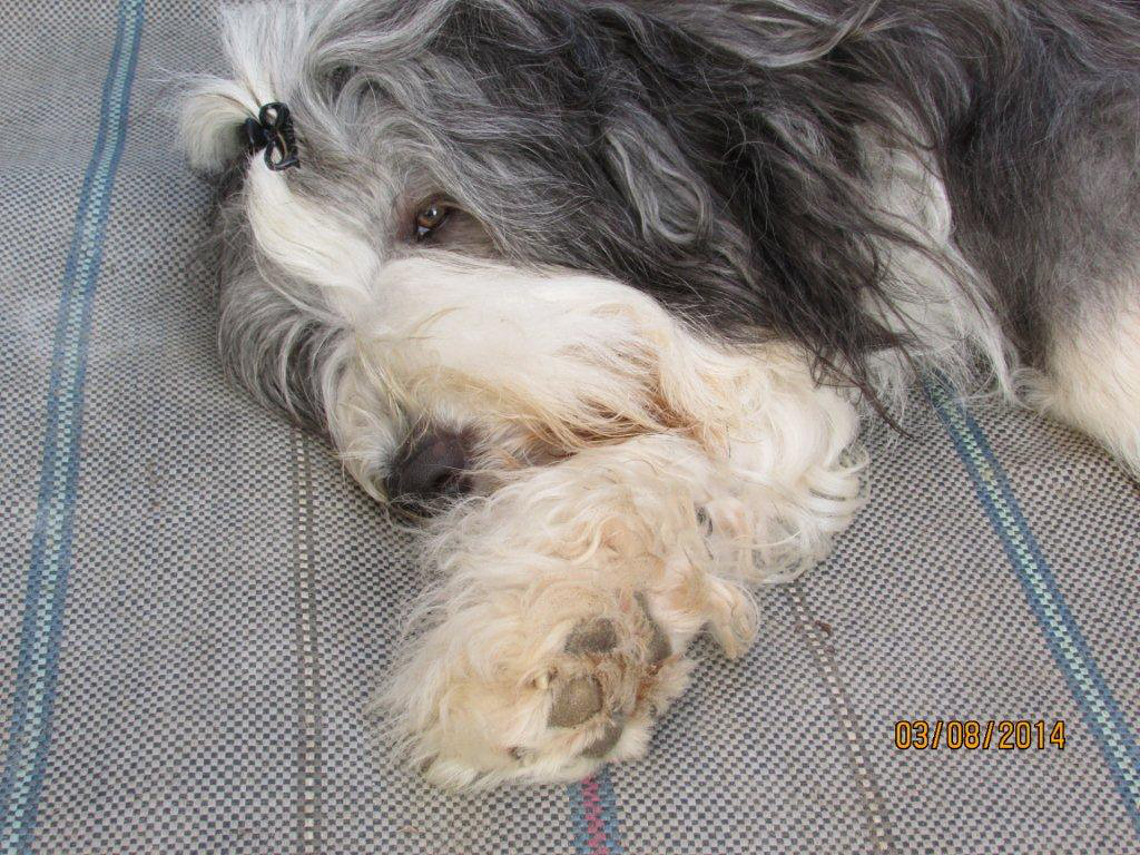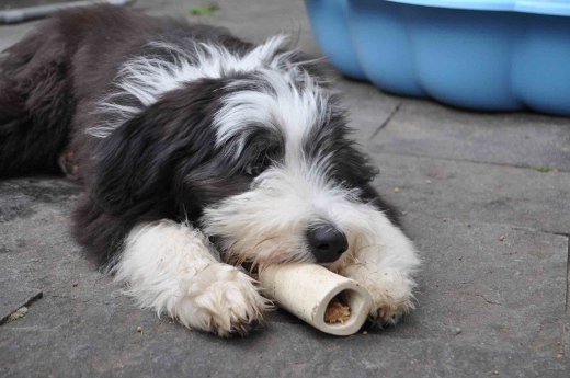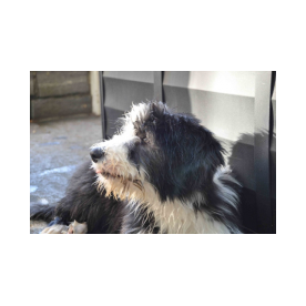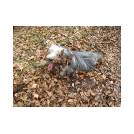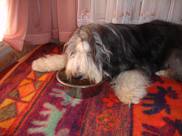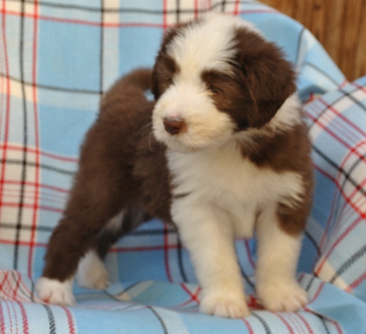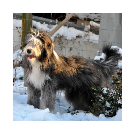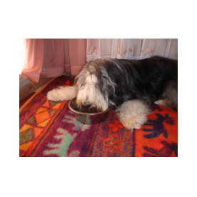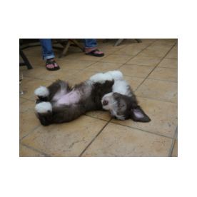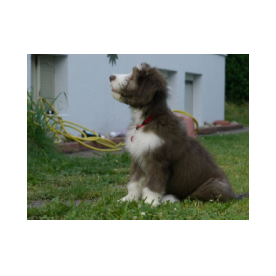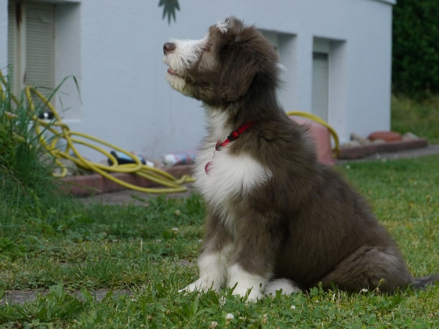 Sie hat traumhaftes Pigment, ganz dunkle Augen und einen schönen breiten Unterkiefer mit korrektem Scherengebiß, eine gute Knochenstärke, und nicht zu langes harsches, pflegeleichtes Fell.