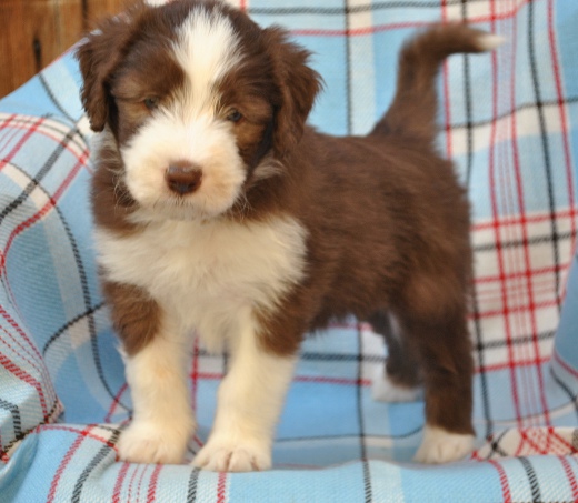 Louis ist der einzige braune Rüde im Wurf. Seine Familie hat sich sofort in ihn verliebt. Er sah immer ein bißchen lustig aus, als hätte er eine Brille an und irgendwie grimmig. Dabei war er das gar nicht. Er kam mit vollständig pigmentiertem Näschen zur Welt, war immer sehr agil und mutig.