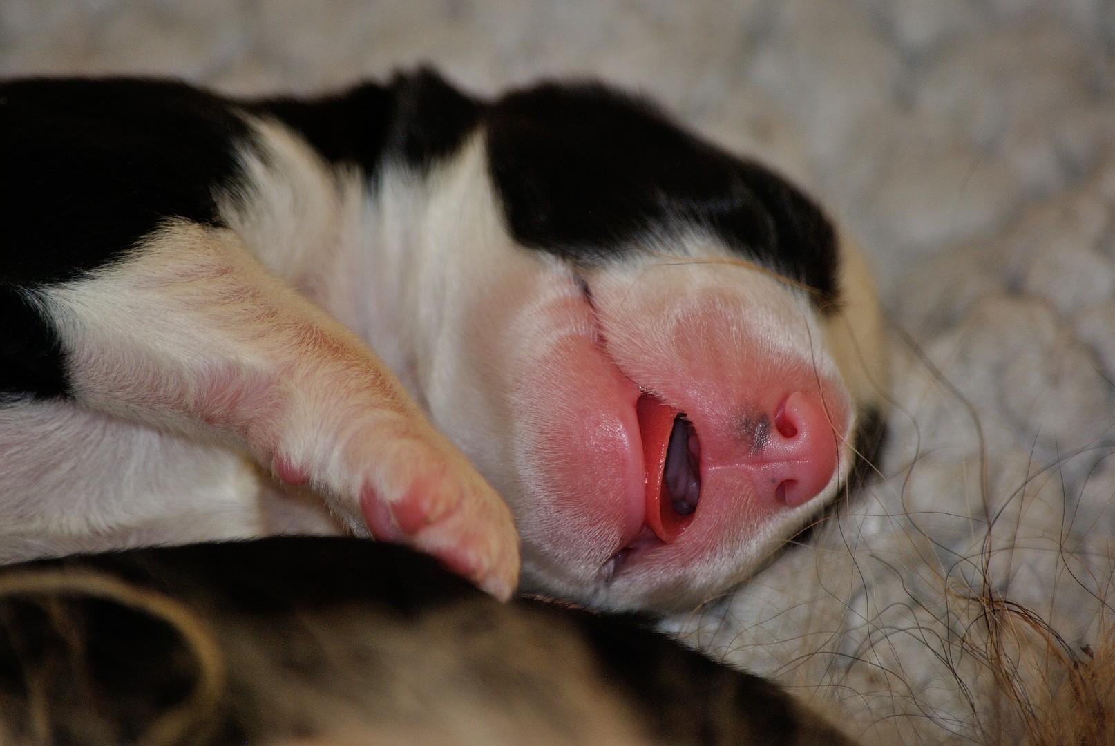 Sie ist die Erstgeborene und brachte uns nicht schlecht zum Staunen: Ich sag ja immer, in jedem Wurf gibt es einen kleinen Schreihals, aber diese kleine Maus kam schon mit Gebrüll zur Welt. Ida sprang erst mal ein Stück weg weil sie sich erschrocken hatte. Plötzlich liegt da ein quietschendes nasses Bündel Etwas. Sie hat sich aber sofort beruhigt als wir ihr das Baby vor die Nase hielten. Sie kümmerte sich sofort um die kleine Entertainerin.