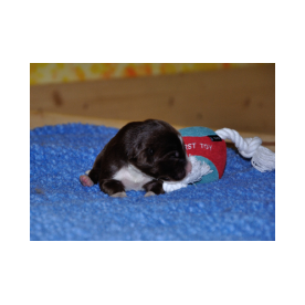 Bonnick war ein braves Baby, vom verhalten nie besonders auffällig, ausgeglichen wenn auch lebhaft und nie auf Streit aus. Er ist sehr gleichmäßig gezeichnet.